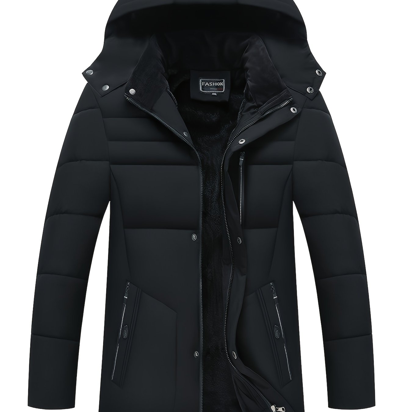 TEMU 남성 슬림핏 후드 재킷 - 앞면 포켓이 있는 가벼운 겨울 코트, 우아한 디자인, 필링, 캐주얼 및 포멀 웨어를 위한 레귤러 핏