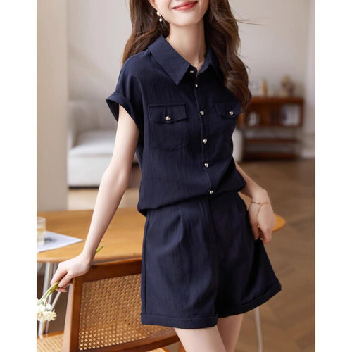 제로투올샵 / 여성 여름 네이비 셔츠 반바지 투피스 세트 다크네이비