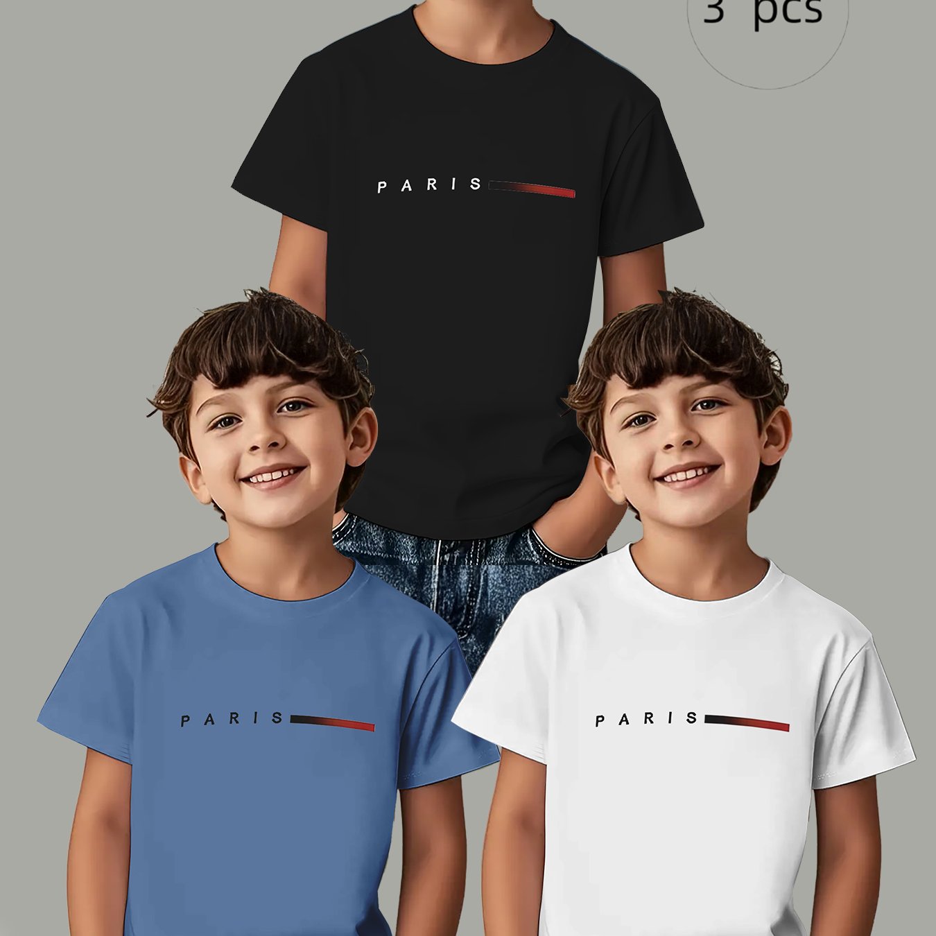 TEMU 3개 세트 남아용 반팔 티셔츠 - 파리 레터링 & 세로 "PARIS" 프린트 - 캐주얼 라운드넥 티셔츠, 봄 여름 가을용 - 세탁기 사용 가능