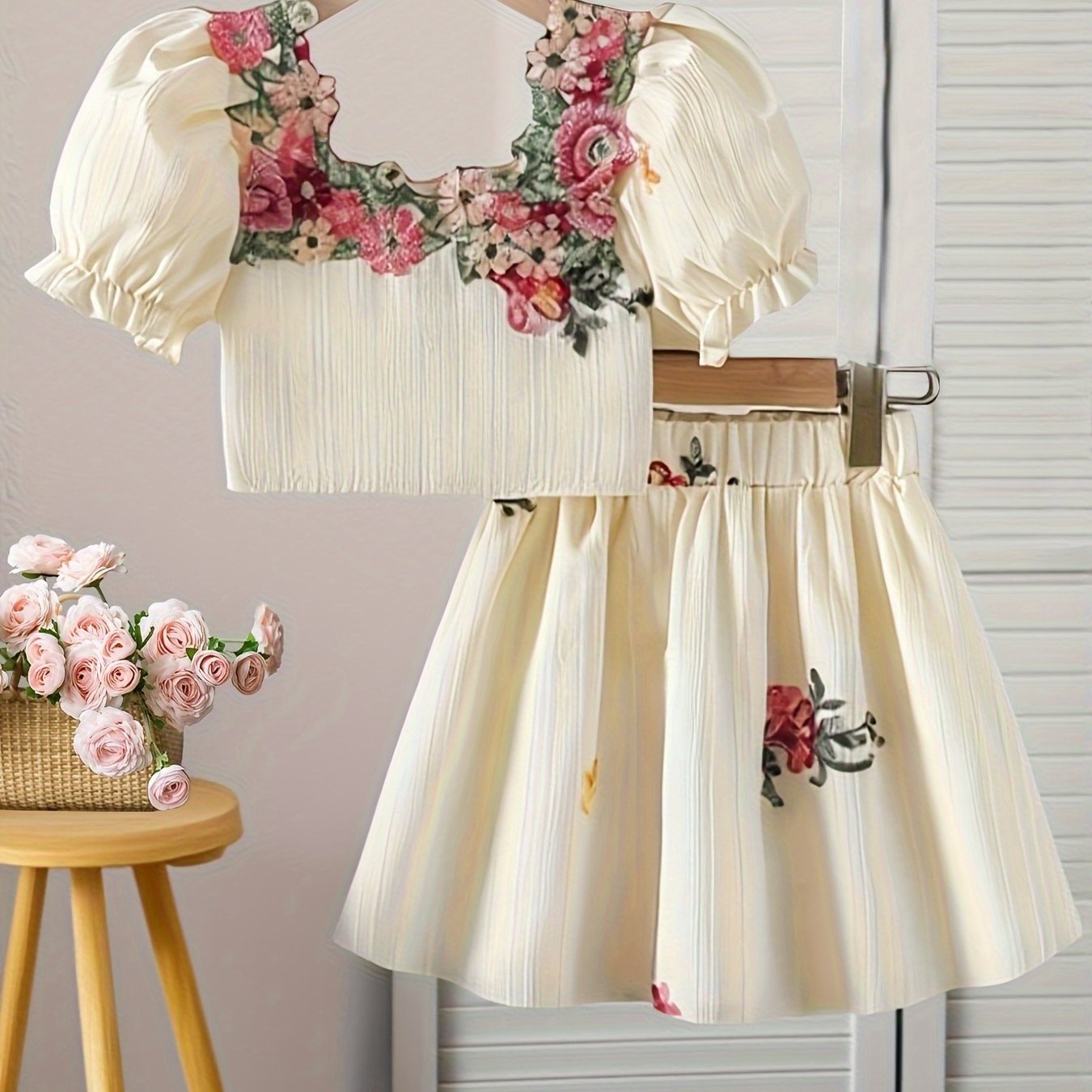 투피스 세트 꽃무늬 민소매 공주 드레스, 여름용 얇은 아기 소녀 의상 귀여운 꽃무늬 치마