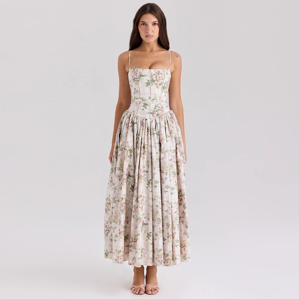 Suninheart 여성을위한 여름 옷 미디 우아한 드레스 2025 새로운 도착 흰색 꽃 프린트 휴일 드레스