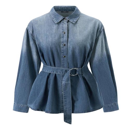 [GGPX]벨티드 포인트 데님 워싱 카라넥 긴팔 셔츠 (GQABA008D)