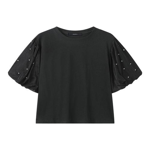 [GGPX]비즈 벌룬 소매 라운드넥 반팔 티셔츠 (GQBLW015D)