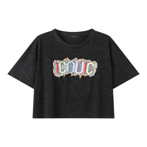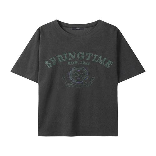 [GGPX]빈티지 레터링 라운드 반팔 티셔츠 (GQBLW003D)