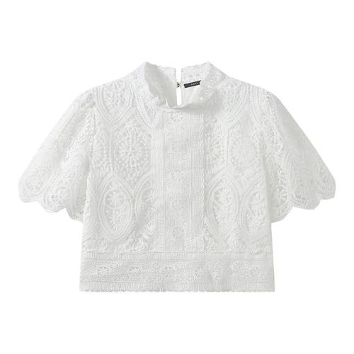 [GGPX]퍼프 소매 펀칭 자수 반팔 블라우스 (GQABA026D)