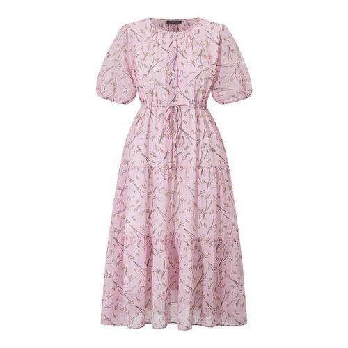 [GGPX]플라워 허리 스트링 라운드 반팔 원피스 (GQBOW015D)