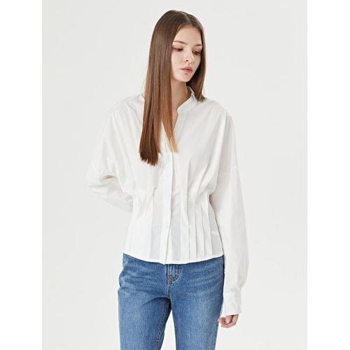 [GGPX]오픈 V넥 핀턱 페미닌 긴팔 블라우스 (GOCBA023D)