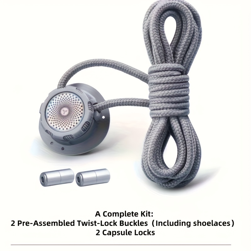 TEMU 6개 세트/1켤레 회전 버튼 신발끈 세트, - 빠른 조절 회전 잠금 장치, 게으른 묶지 스포츠 런닝화 신발끈, 회색 굵은 신발끈 로프 노브 신발 버클 리테이너, 하이킹, 피트니스에 적합