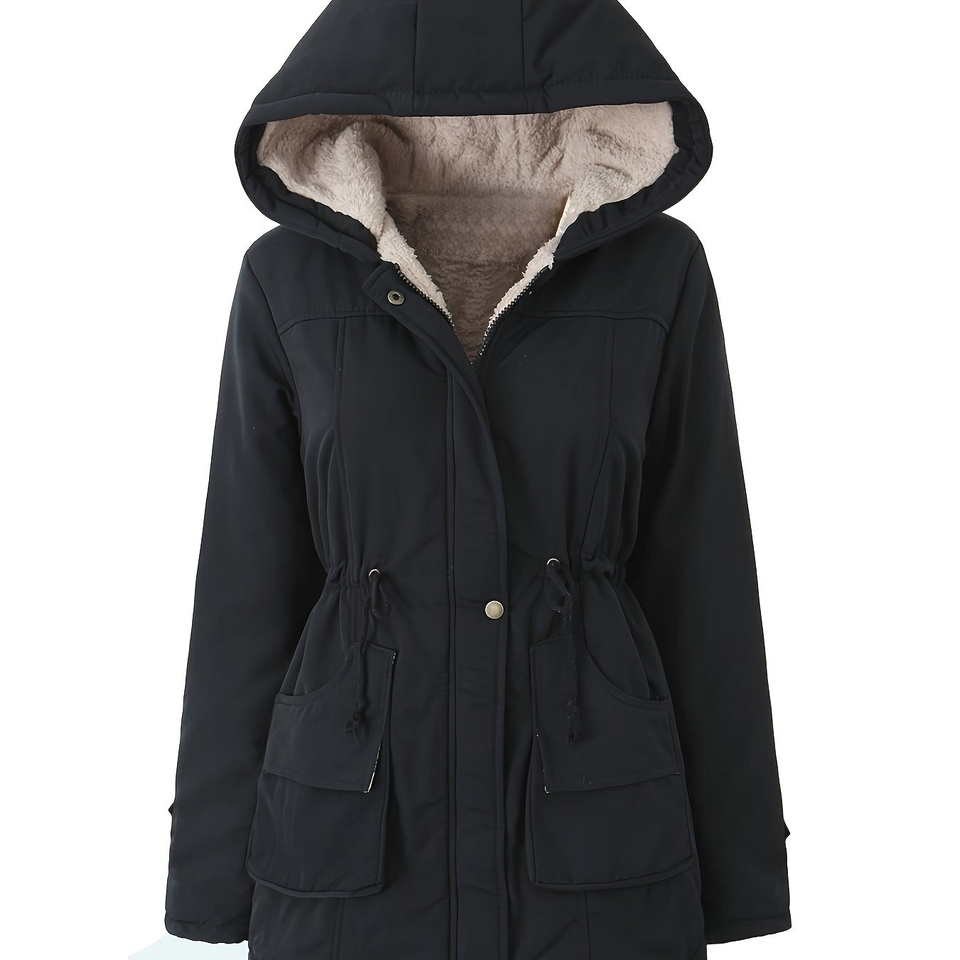 TEMU 여성용 겨울 따뜻한 포켓 후드 재킷 - 캐주얼한 날에 완벽한 선택.