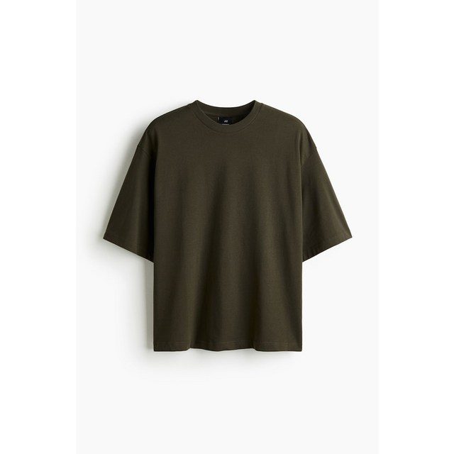 에이치앤엠 H&M 루즈핏 박스 티셔츠 - 다크 카키 그린-321822-321822