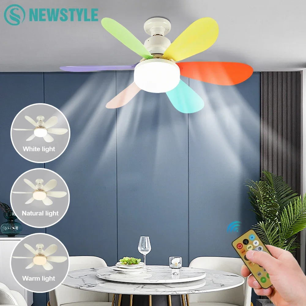 E26/E27 기본 가정용 조용히 천장 팬 30W 40W LED 야간 조명 무선 원격 무단 조광 스마트 천장 팬 조명