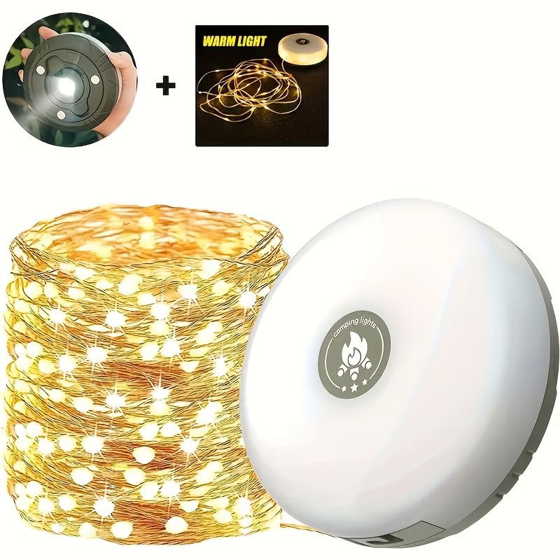 TEMU 캠핑 라이트 스트링 팩, 따뜻한 빛 USB 충전 야외 캠핑 조명, IP44 휴대용 캠핑 조명 5가지 모드 및 조절 가능한 밝기, 내구성 있는 할로윈 요정 크리스마스 조명, 추수감사절에 완벽