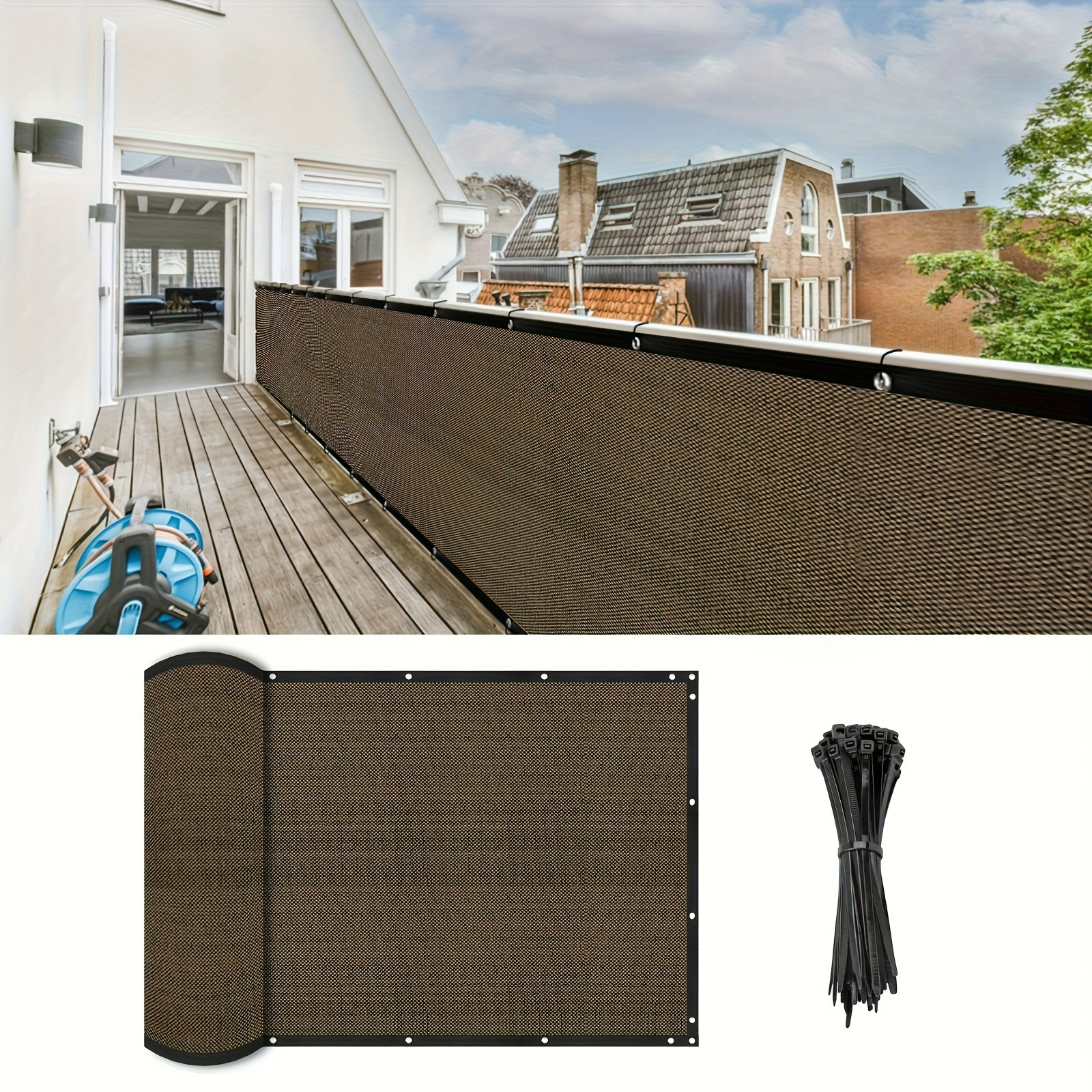 TEMU 발코니 사생활 보호 스크린 울타리, 사생활 보호 울타리 커버 메시 방풍 울타리 그늘막, UV 보호용 아일렛 포함, 아파트, 테라스, 뒤뜰, 수영장, 현관에 적합 (1개, 커피 색상)