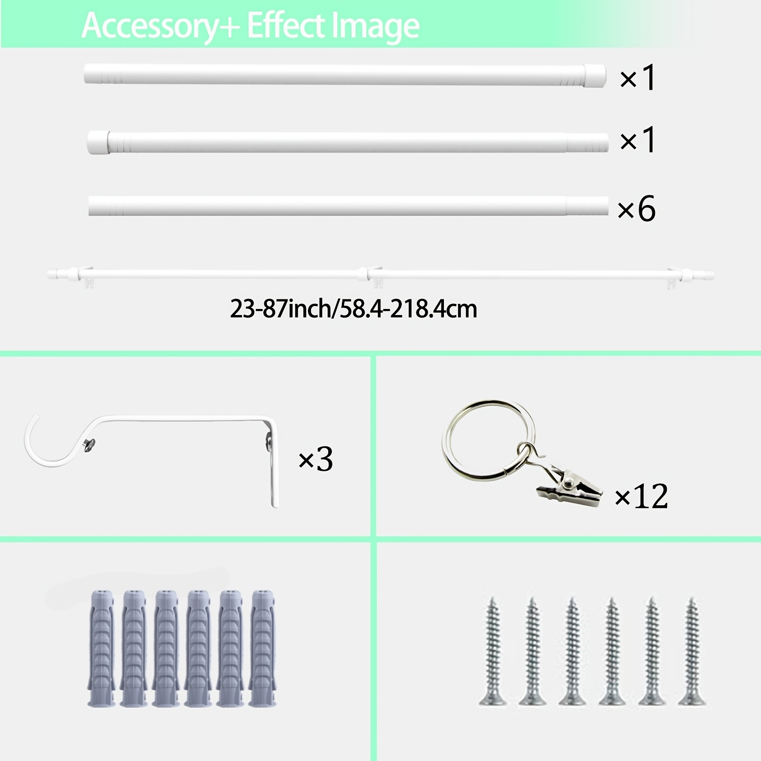 TEMU 간편한 설치의 단순한 화이트 다용도 커튼봉, 23-87인치 창문에 적합. 선물로 커튼 클립 포함. 커튼, 시어 드레이프, 샤워커튼 등에 사용 가능한 멀티퍼포즈 커튼봉. 내구성 있고 튼튼함. 교체 청소가 편리함. 침실, 발코니, 주방, 거실, 식당, 사무실, 임대주택에 적합