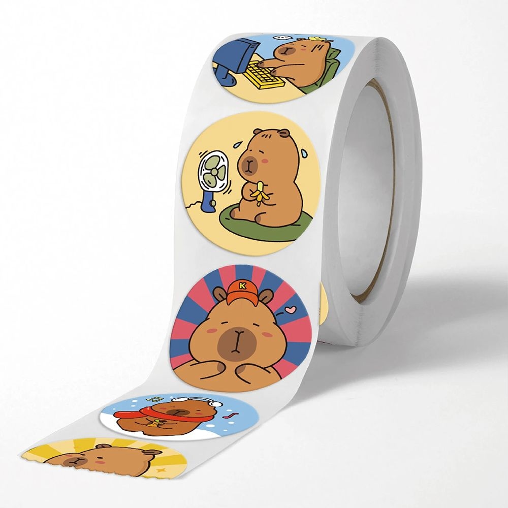 카피바라 롤 스티커 500pcs 1롤 폰꾸미기 다이어리꾸미기 다꾸 원형 스티커 (3종)