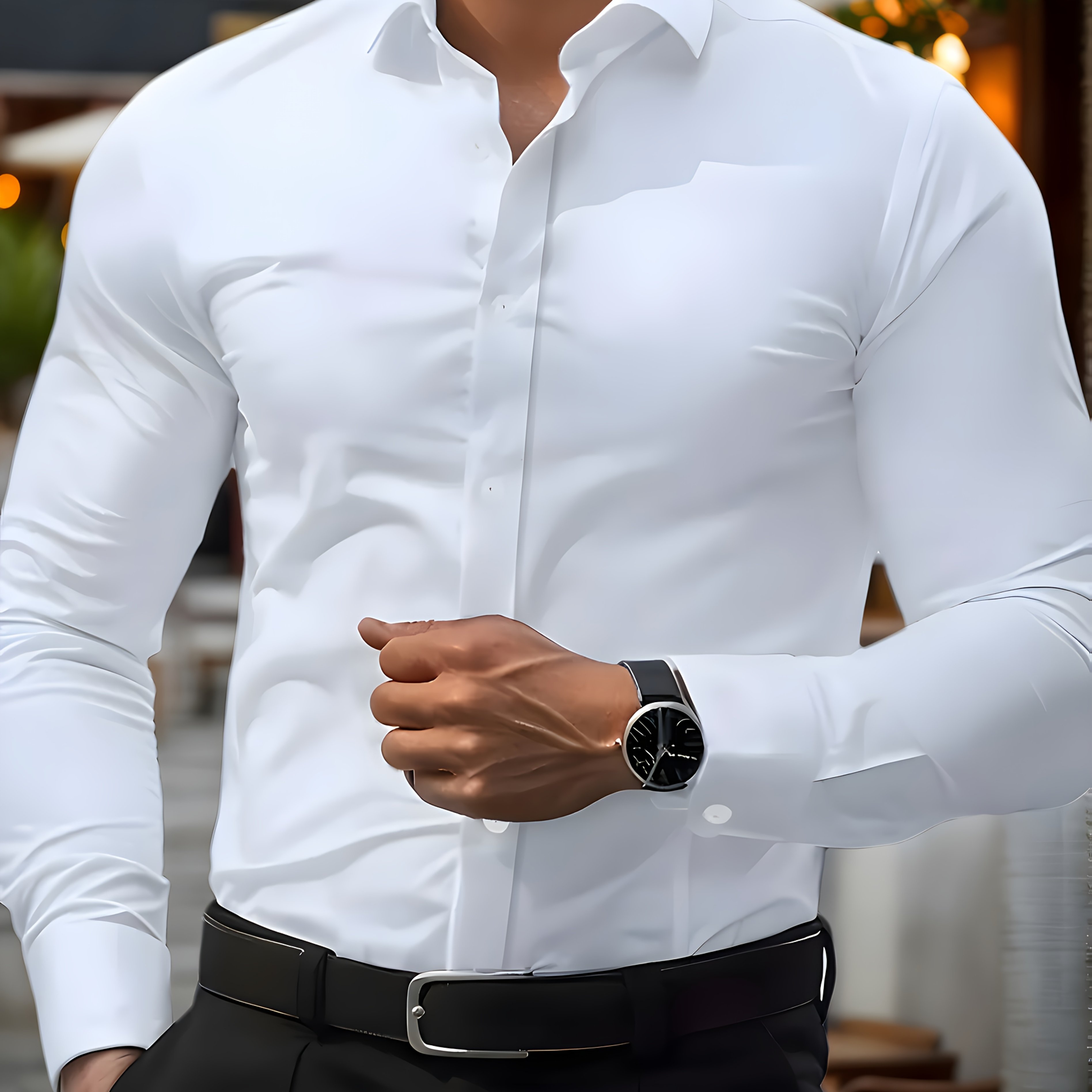 솔리드 컬러 남성 캐주얼 화이트 셔츠, 패셔너블한 캐주얼 긴팔 스트레치 원단, 비즈니스 정장 셔츠, 편안한 원단