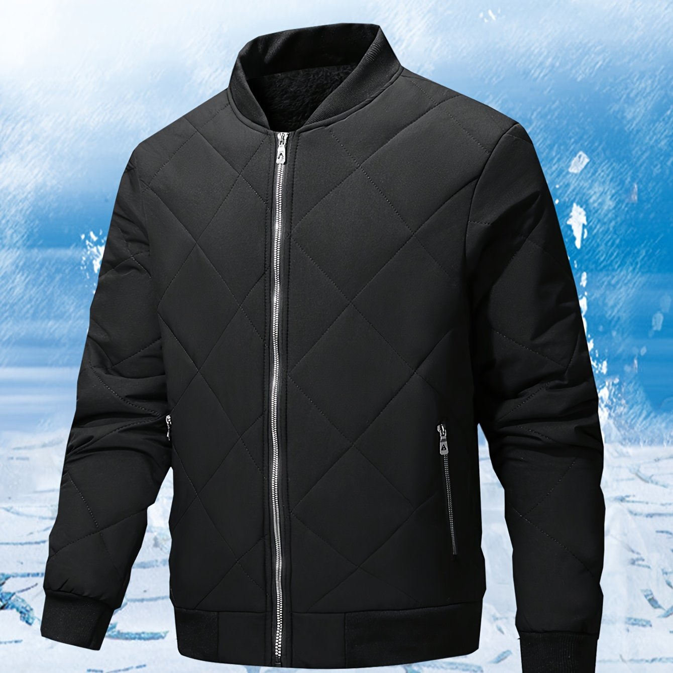 TEMU 남성 솔리드 컬러 야구 칼라 겨울 재킷 | 긴소매 캐주얼 스타일, 레귤러 핏, 섬유 충전재, 포켓 디테일