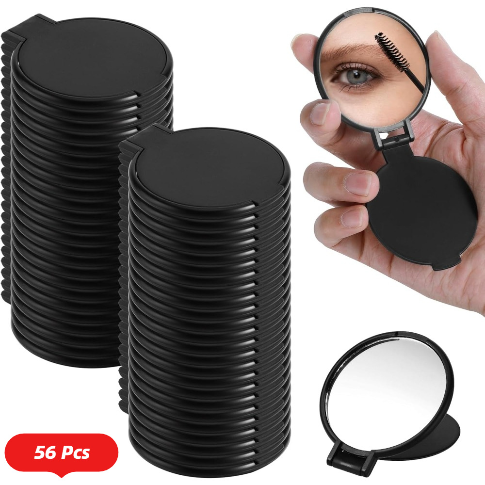 TEMU 56개 세트 라운드 컴팩트 미러 - 여성용 미니 접이식 거울, 파우더 코팅 플라스틱, 휴대용 포켓 미러, 여행, 메이크업, 가방용, 빈티지 스타일 (56개 세트)