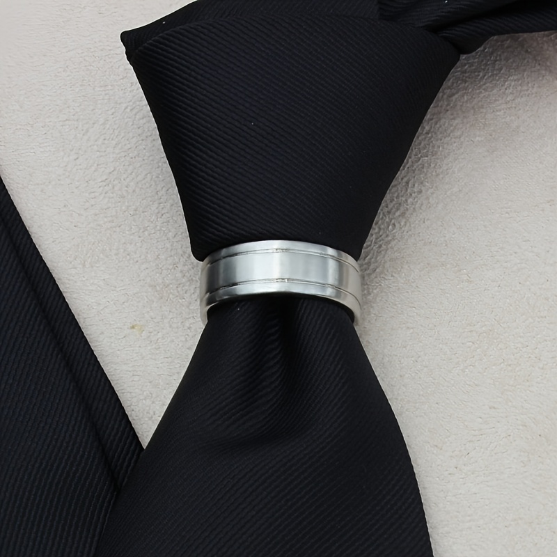 TEMU 남성용 구리 D-형 넥타이 클립 - 세련된 단색 홀로우 링으로 안전한 홀드, 공식 및 캐주얼 웨어에 이상적, 모든 계절에 적합한 다용도 넥타이 클립|우아한 넥타이 클립|내구성 넥타이 클립