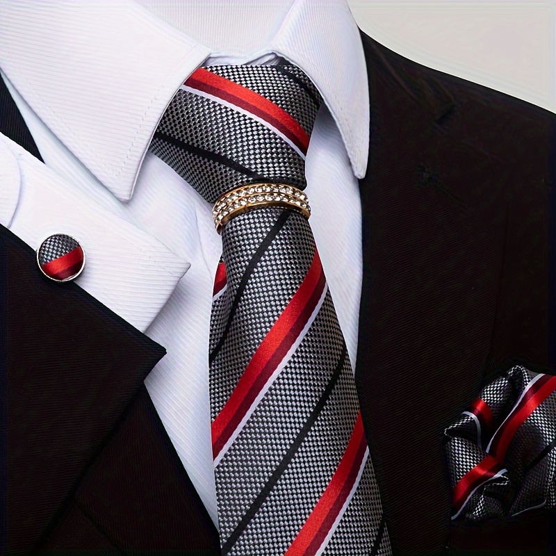 TEMU 남성용 레드 골드 타이 세트 4종 (넥타이, , 반지, 손수건, 커프스링크) - 정장, 파티, 웨딩용