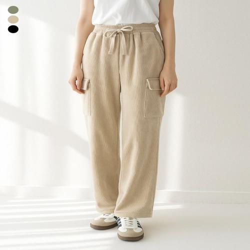 [케네스콜][케네스콜]여) 코듀로이 저지 풀밴딩 루즈 테이퍼드핏 모듈 카고 조거 팬츠 (EKSWCYE550P)