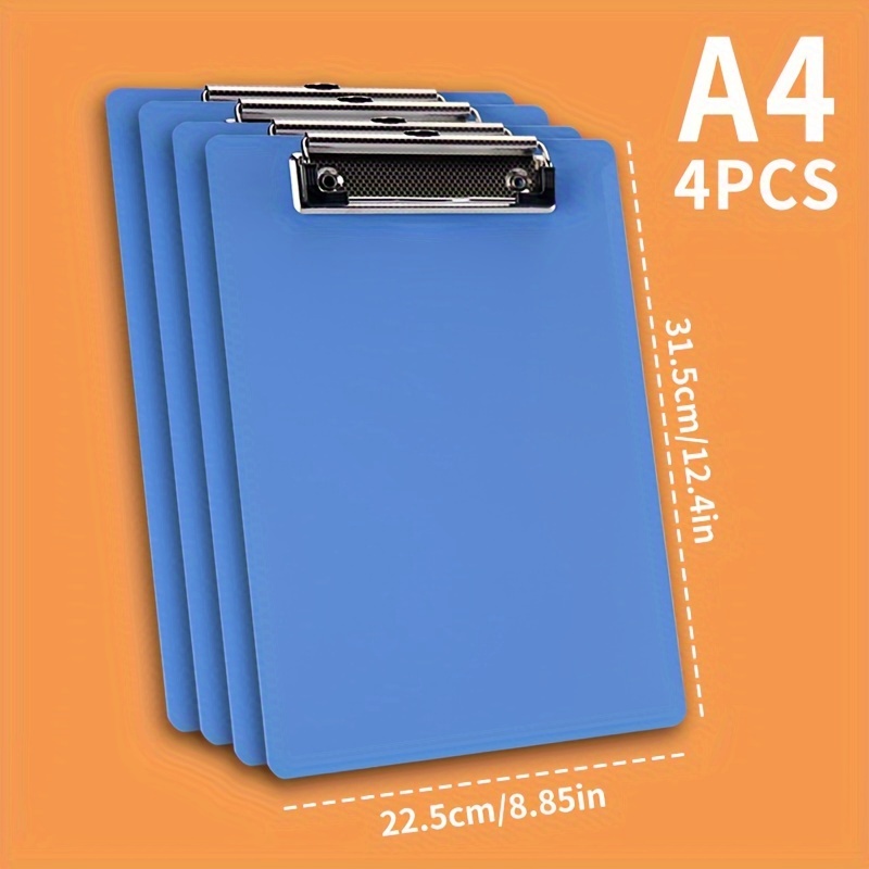 TEMU 4개입 A4 두꺼운 PP 소재 클립보드, 내구성 강한 스크래치 방지 파일 폴더 - 사무실, 간호사, 학교, 가정용
