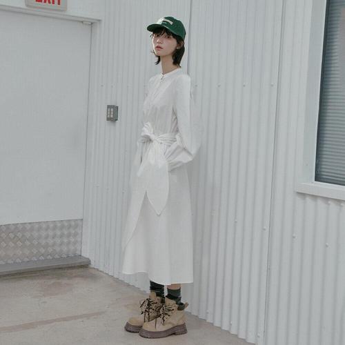 [랩]LAP 랩 헨리넥 허리매듭 롱 원피스 AS1WO262_DG