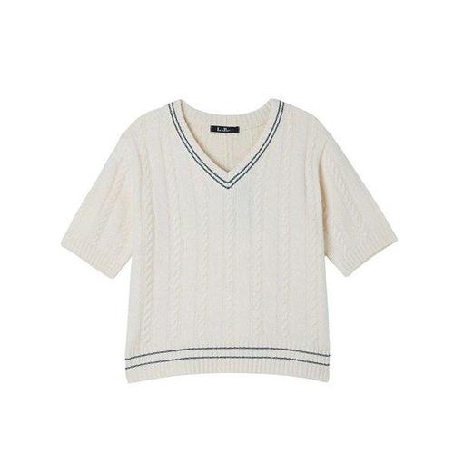 갤러리아_[LAP]24 F/W 캐시라이크 배색라인 브이넥 반팔니트 (AQ4KHA43)