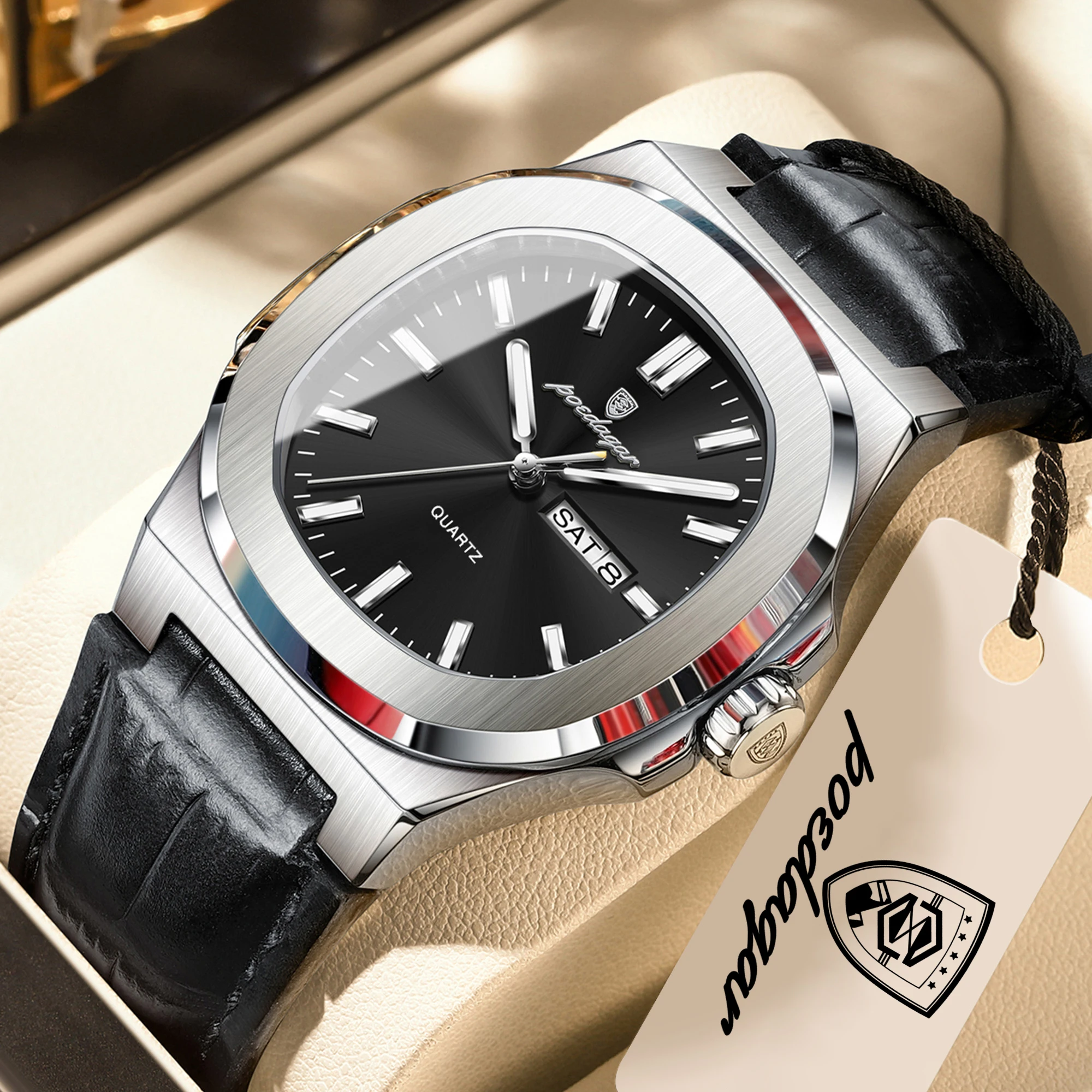 포에다가 패션 손목시계 남자친구용 야광 방수 주간 달력 비즈니스 커플 시계 가죽 고급 남성 시계