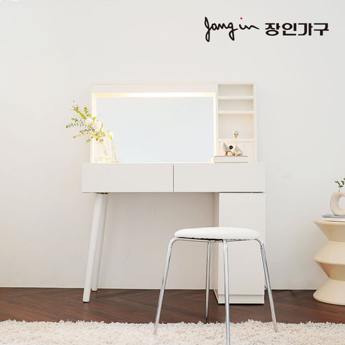 장인가구 [비밀특가] 뜨레야 LED 거울 원목 콘솔 수납 화장대 (스툴 미포함)