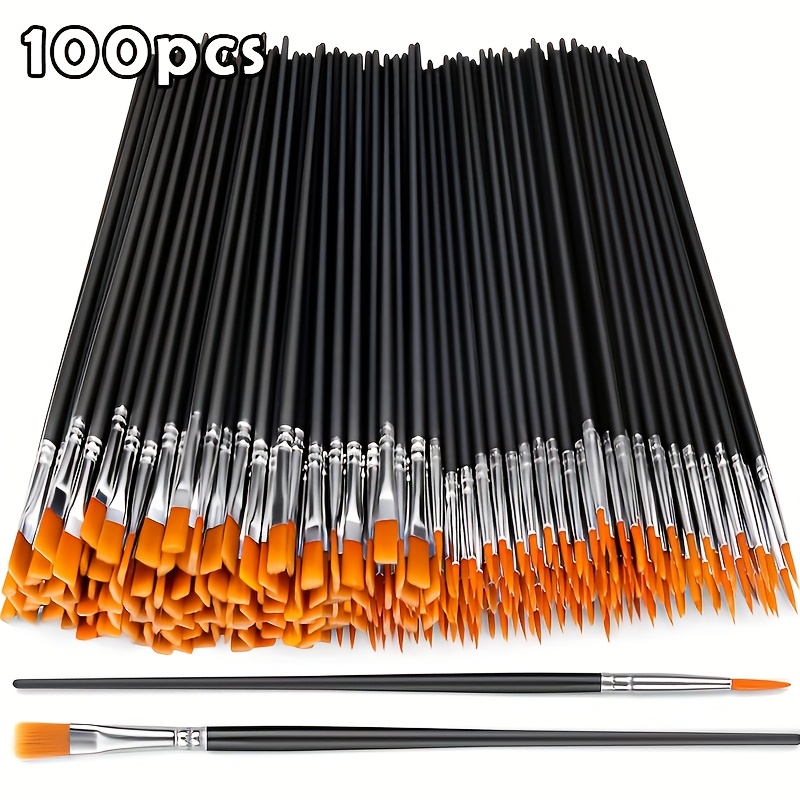 TEMU 블랙 나일론 강모 수묵화 붓 100개 세트, 플랫 및 라운드 팁 아크릴 수채화 붓 포함, 유화, 수채화, 페이스 페인팅 아티스트용 전문가용 키트, 아크릴, 유화, 수채화, 캔버스, 암벽화, 네일 아트용 공예용 페인트 브러시 - 예술가 및 취미가를 위한 이상적인 제품