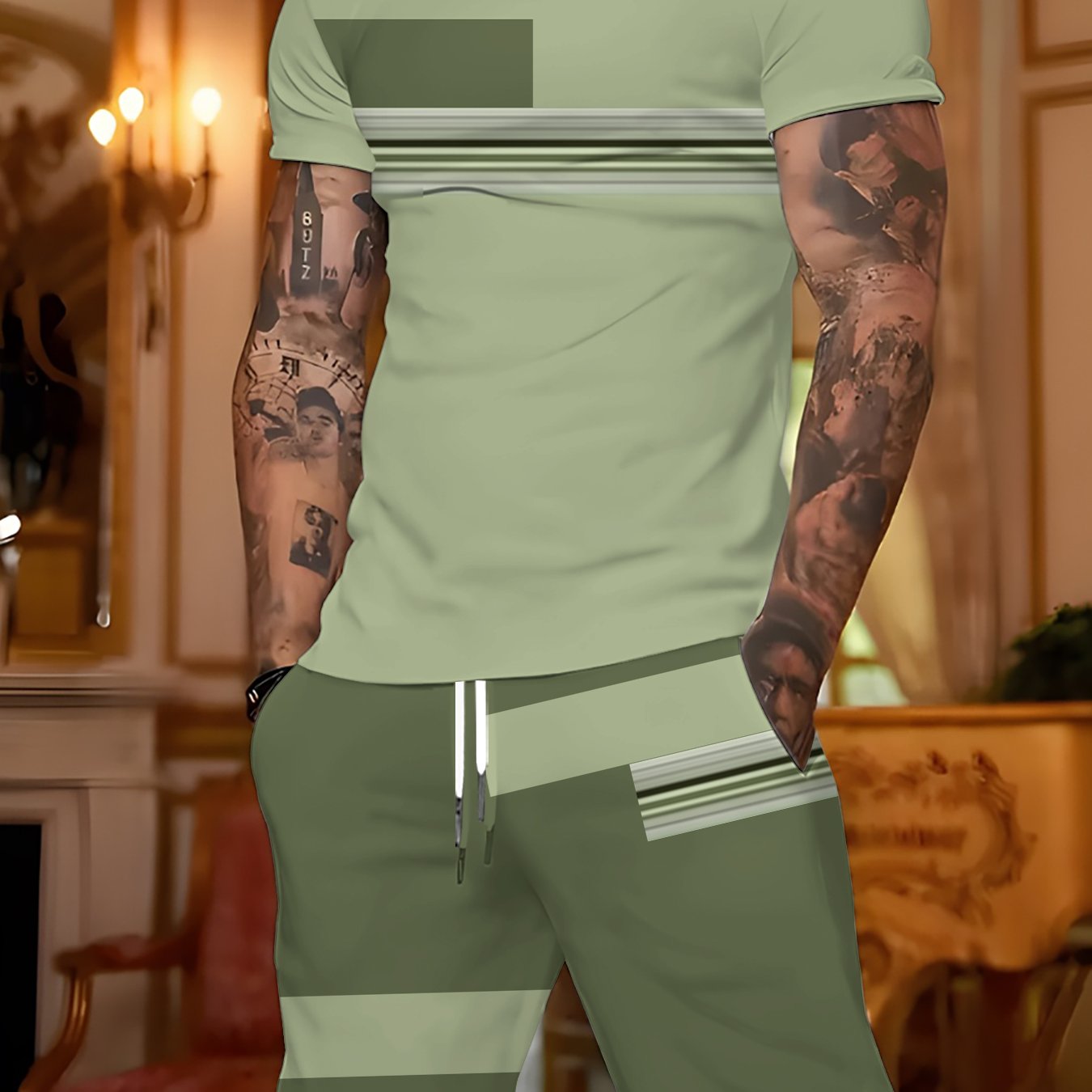 TEMU 트렌디한 남성 세트: 반팔 티셔츠 + 캐주얼 반바지 투피스 아웃핏, 슬림핏 여름 패션 남성 투피스 세트
