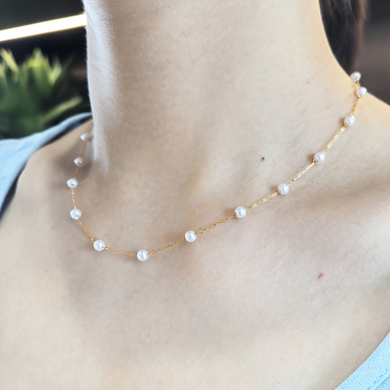 TEMU 고급스러운 3.5mm 모조 진주 목걸이 여성용 골든 스테인리스 스틸 베이스 체인, 다용도 핸드메이드 모조 진주 비즈 초커 목걸이, 새로운 라이브 화이트 모조 진주 주얼리, 선택한 예쁜 화이트 모조 진주 목걸이 더 나은 자매 선물