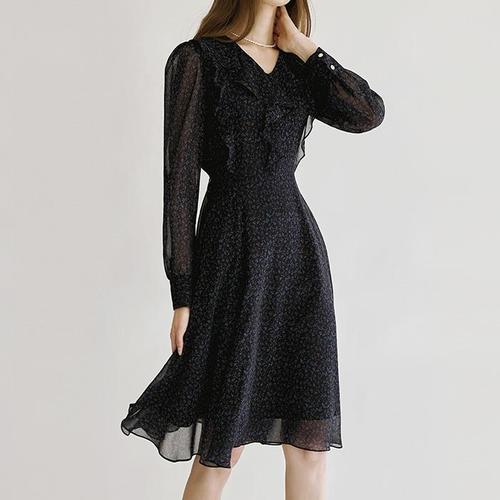 [스타일온미]플로린 러플라인 쉬폰 미디 플레어 원피스