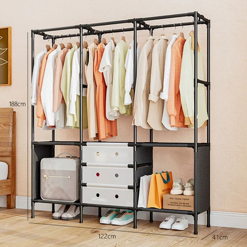 간단한 다기능 코트 랙 선반 홈 기숙사 바닥 걸이 이동식 옷 랙, 스토리지 랙