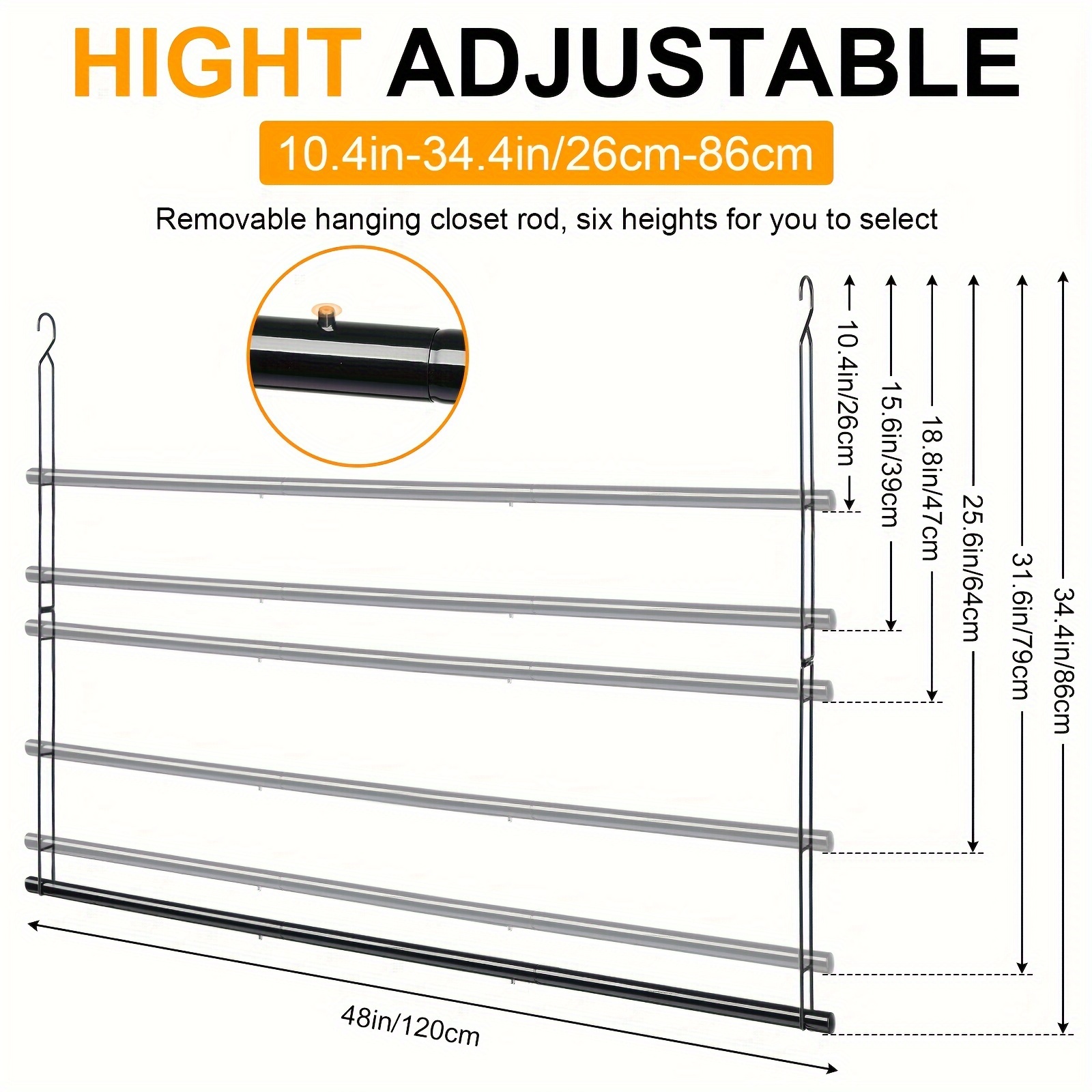 TEMU 강력한 조절 가능한 옷장 걸이대 - 공간 절약, 6단계 높이, 옷과 수건용 확장 가능, 검정색