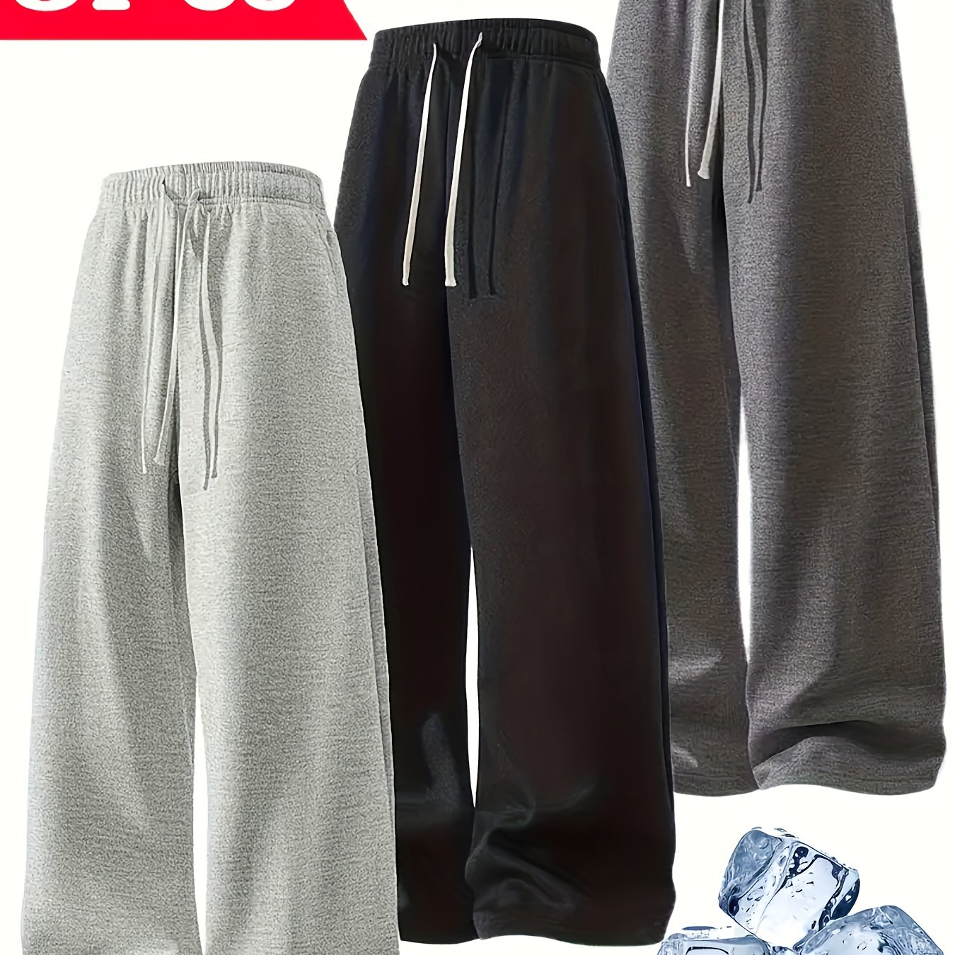 TEMU 3팩 남성용 루즈핏 와이드 레그 조거 팬츠 - 통기성 폴리에스터 드로스트링 허리 바지, 야외, 페스티벌 및 일상복에 적합 - 솔리드 컬러 캐주얼 운동복 포켓 포함, 사계절용 (남성용)|남자바지