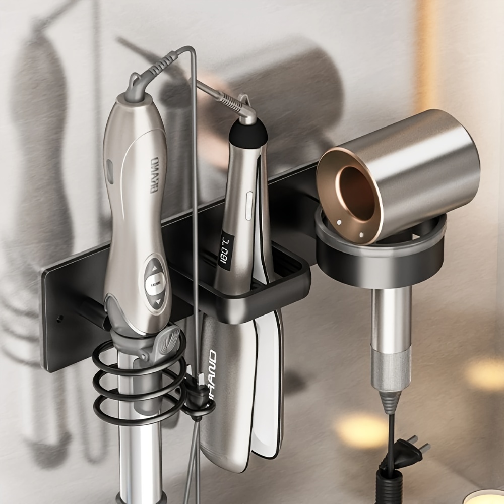 TEMU 1개 헤어드라이어 스탠드, 컬링 및 스트레이트닝용, 드릴링 필요 없음; 벽걸이형 헤어드라이어 스탠드, 3-in-1 욕실 헤어 스타일링 도구 정리대, 일반 헤어드라이어 호환; 욕실 또는 미용실 보관 선반용, 헤어드라이어 홀더,살롱 조직, 정리함,세련된 수납 선반,경량 홀더,컬링 아이언 스탠드,스트레이트닝 툴 홀더,미용실 전문가,정돈된 라이프스타일