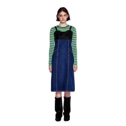 [오아이오아이컬렉션]LEATHER MIXED DENIM ONEPIECE [BLUE]