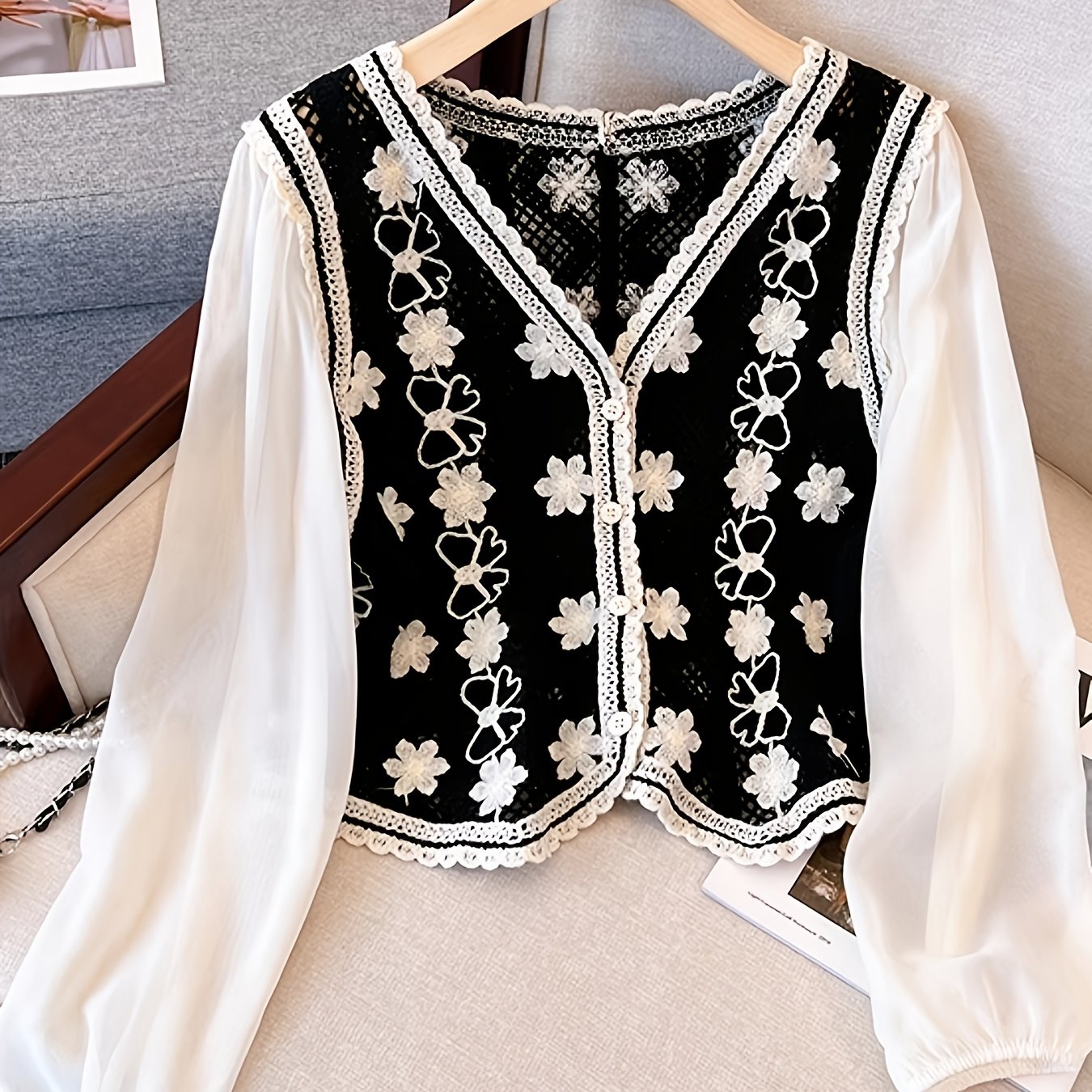 TEMU 여성용 롱소매 에스닉 스타일 쉬폰 가디건 - 레이스업 크로셰 자수 아우터웨어