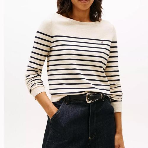 [해외배송] 타미 여성 스트라이프 보트넥 스웨터 Beige