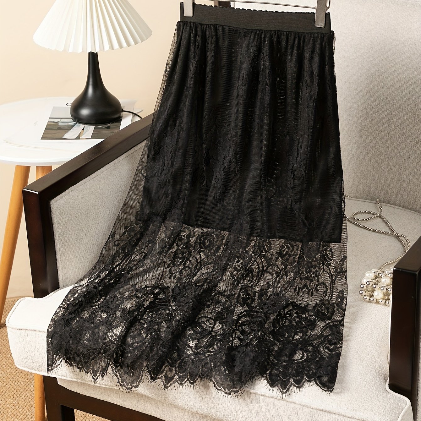 TEMU 클래식 시크 레이스 A라인 스커트, 캐주얼, 단색, 봄과 여름에 필수 - 여성의 일상 패션 의류