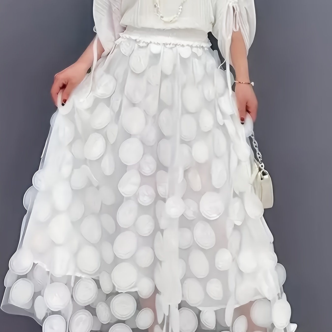TEMU 잎무늬 메쉬 하이웨이스트 스커트, 우아한 A라인 스커트 봄 & 여름, 여성 의류