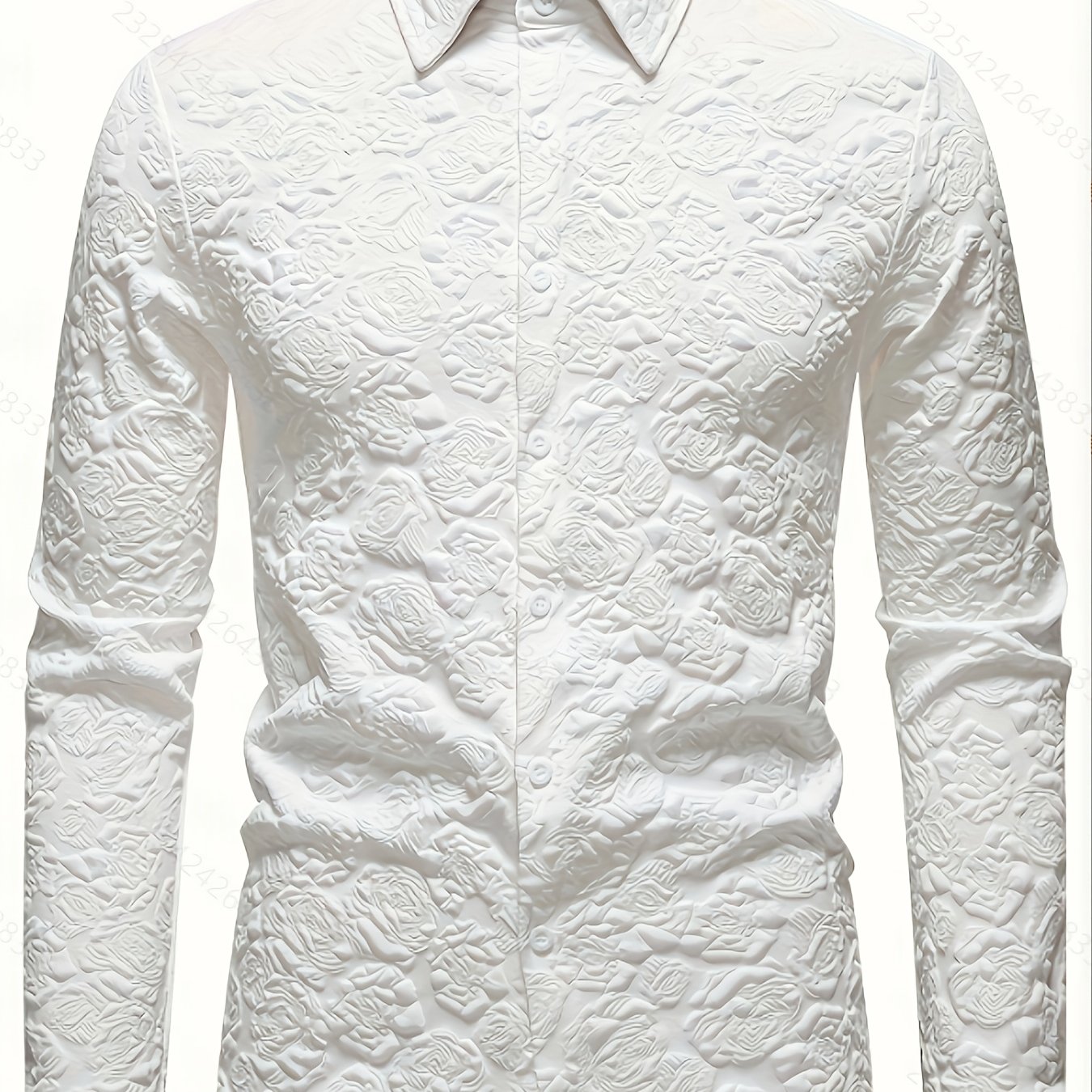TEMU 남성용 솔리드 긴팔 셔츠, 버튼 디테일, 니트 원단, 레귤러 핏, 비즈니스 및 캐주얼 웨어에 적합
