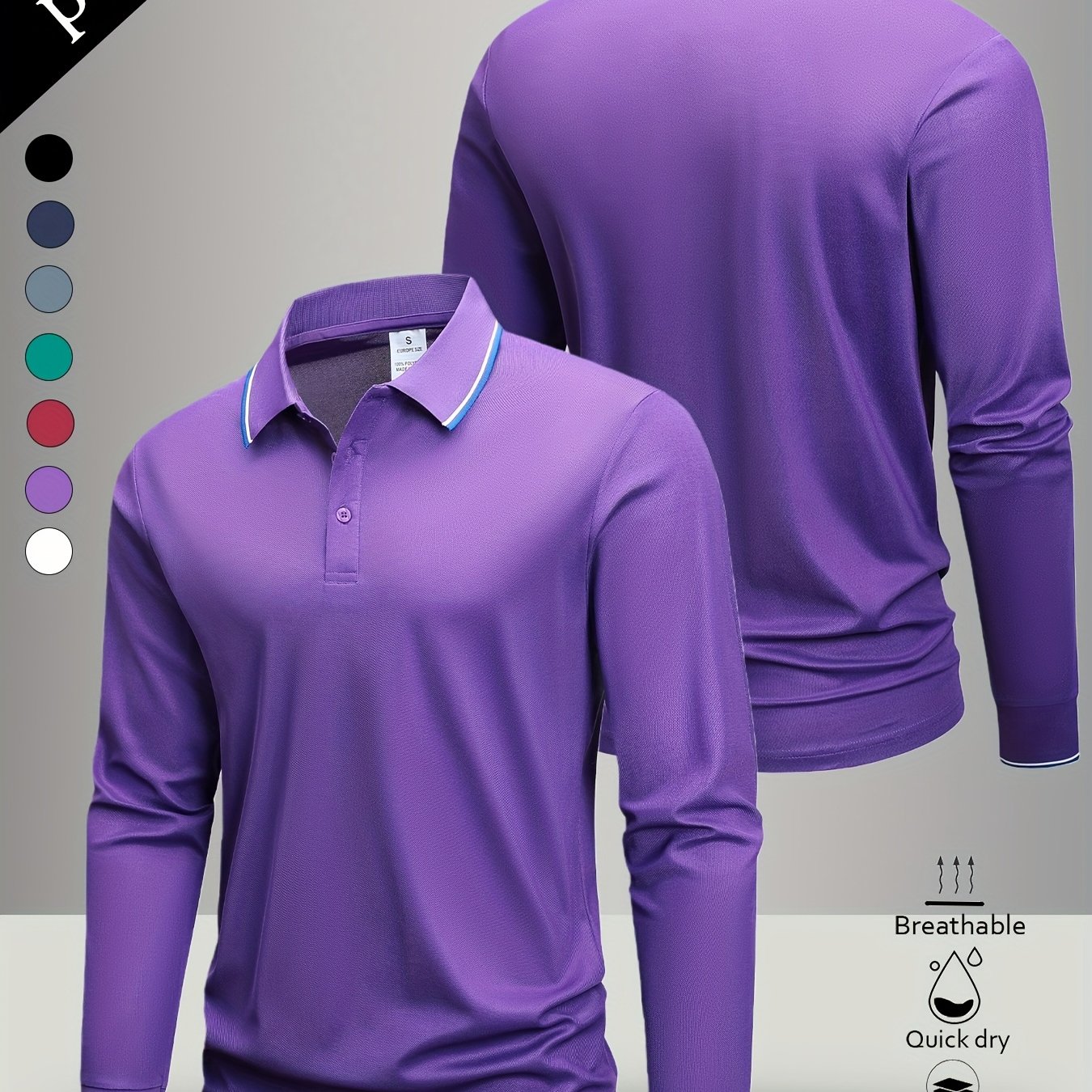TEMU 남성용 긴팔 폴로 셔츠, 봄, 가을용 칼라; 무지 멀티컬러 캐주얼 스포츠 탑, 여행, 직장, 선물용, 패셔너블하고 다재다능함. 최근 구매 | 지금 구매, 나중에 결제