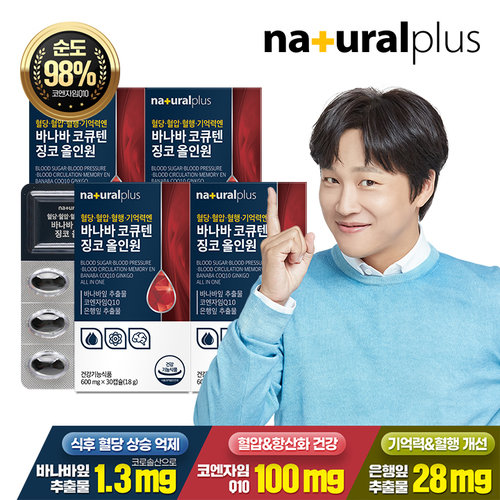[내츄럴플러스] 혈당 혈압 기억력엔 바나바 코큐텐 징코 올인원 30캡슐 4박스 / 코엔자임Q10 은행잎추출물