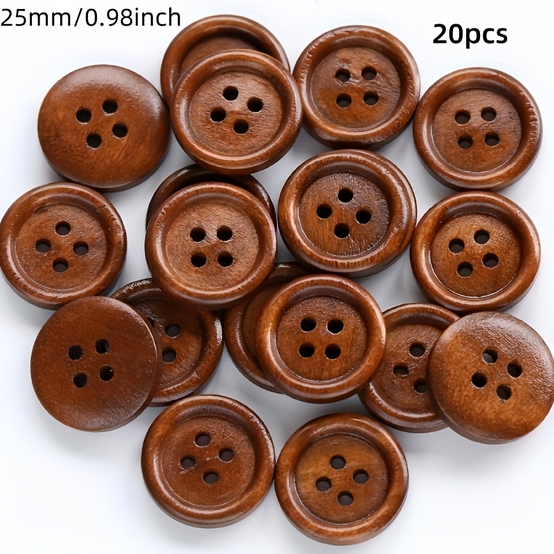 TEMU 20개 천연 나무 단추, 4홀 원형 광택 재봉 단추, 공예, 의류 및 니트웨어에 적합 - 의류 및 추가품을 위한 클래식 나무 단추 디자인, 재봉 용품