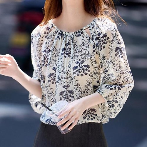 [패션시그널] 비트링클 5부소매 블라우스 3C6D5C