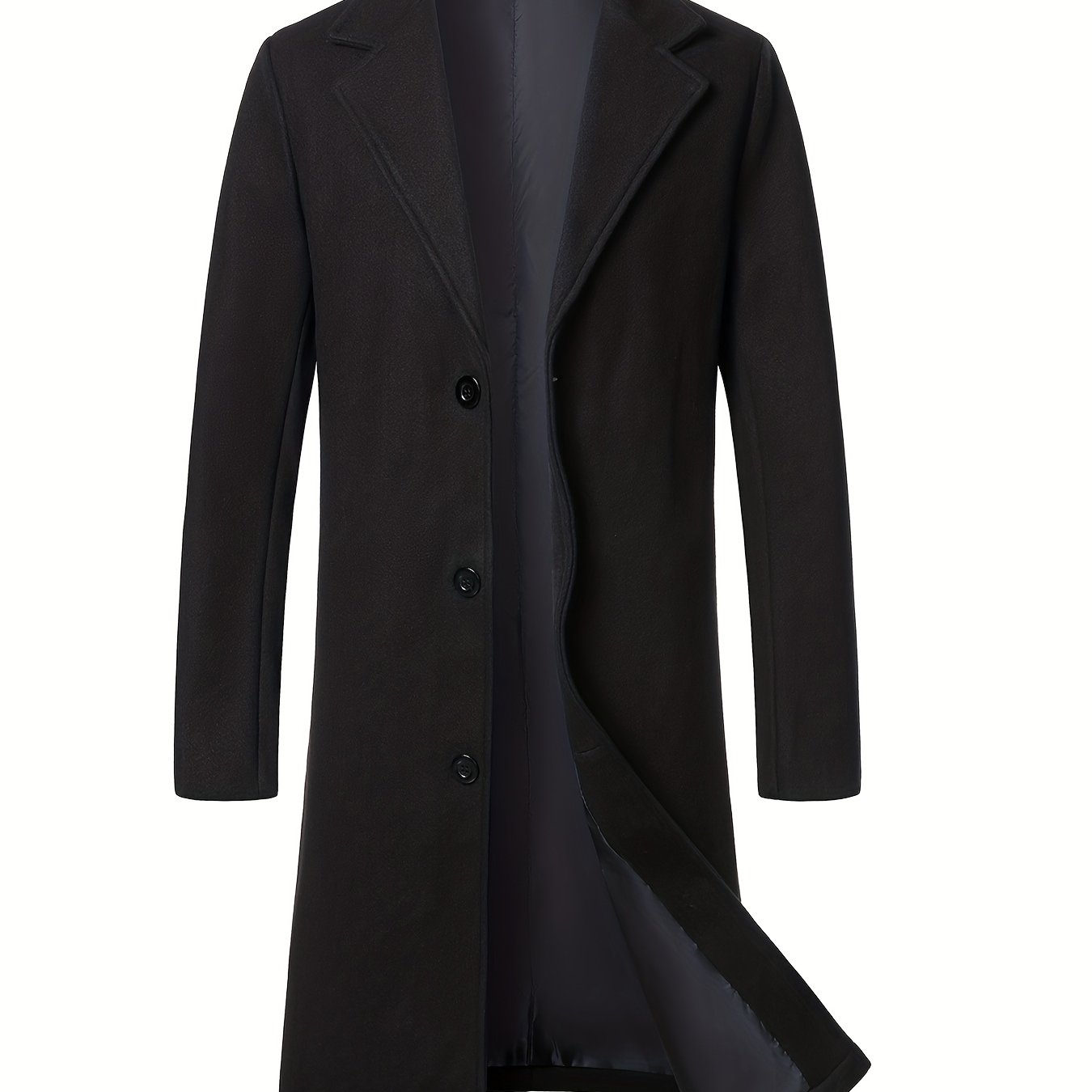 TEMU 남성용 롱 코트 - 우아한 포멀 & 데일리 겨울 코트, 라펠 칼라, 싱글 브레스트 버튼 클로저, 구조적인 핏, 세탁기 사용 가능 - 단색 (), 남성용 겨울 코트, 남성용 겨울 옷, 남성용 고품질 겨울 코트