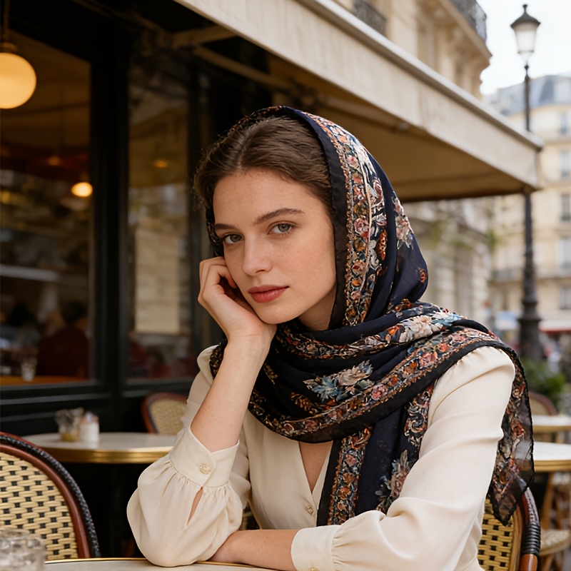 TEMU 100% 뽕나무 실크 - 라이트 럭셔리 빈티지 플로럴 페이즐리 뽕나무 실크 스카프, 가벼운 봄/여름 패션 스카프, 겹쳐서 착용하거나 단독으로 착용 가능, 다기능 패션 액세서리, 정교한 디자인, 고급스러운 촉감, 봄 옷차림에 필수, 활용도 높고 스타일리시함, 손세탁 선택 가능
